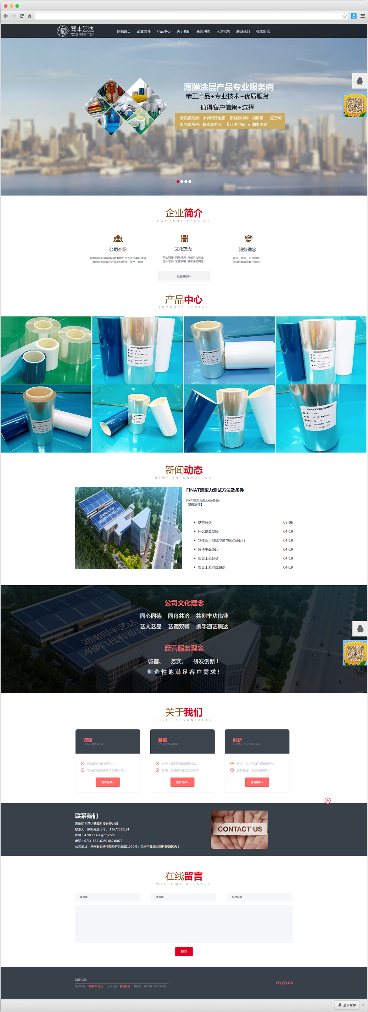 湖南同丰艺达薄膜科技有限公司专业从事各种薄膜基材涂布涂层产品的研发、生产、销售与服务;拥有资深产品研发技术团队;拥有从事涂布资深经验的从业人员生产队伍;拥有自主研发的涂层、成膜核心配方工艺及技术;新型烫印膜、离型膜生产线。