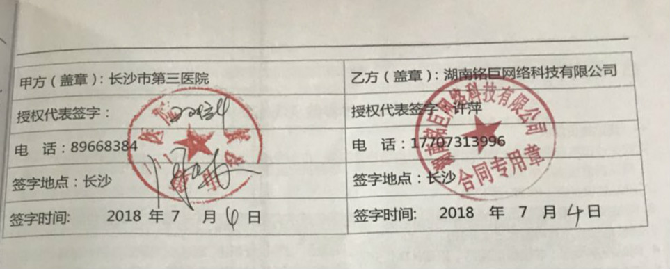 2018年7月,我公司参与了长沙市第三医院官网平台搭建项目的投标工作,经过对项目地的实地考察会同公司技术人员、商务团队前往与甲方技术人员进行多次了解招标需求,充分向甲方展现了我公司的综合实力,最终成功中标了长沙市第三医院官网平台项目!相信无论是后期的网站搭建还是接下来项目的合作,我们都会积极认真的对待,与长沙市第三医院建立长期战略合作关系!