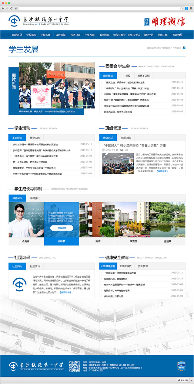 党建工作、学生发展、教师发展、校长工作室等模块专门设计子站,风格和主站统一,内容集中体现,突出了学校办学特色。