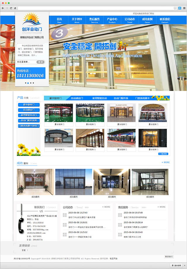 湖南创洋自动门有限公司专业制造安装各种自动门、旋转门、平移门、感应门、智能收费、智能化停车场系统铝合金地垫系列,肯德基门系列;代理销售进口和国产自动门产品,并提供相关的技术支持及售后服务工作。